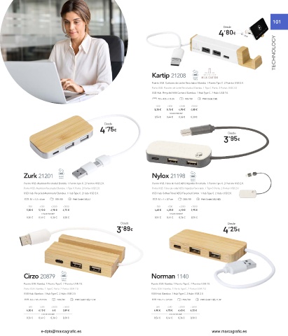 Puerto USB. Aluminio Reciclado/ Bambú. 1 Puerto Tipo C. 2 Puertos USB 2.0. Puerto USB. Fibra de Café/ ABS/ Algodón Reciclado. 1 Puerto Tipo C. 2 Puertos USB 2.0.