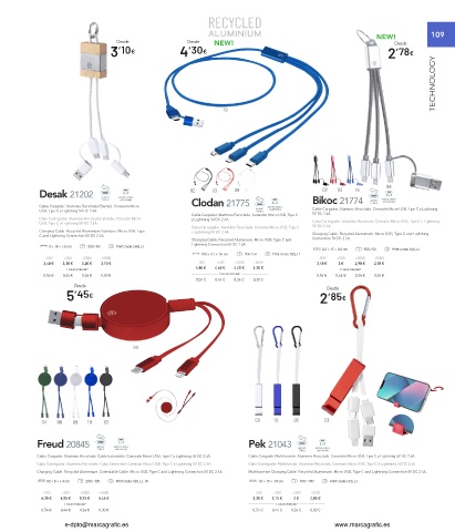 Cable Cargador. Aluminio Reciclado/ Bambú. Conexión Micro MICRO USB & Cable Cargador. Aluminio Reciclado. Conexión Micro USB, Tipo C y Lightning
