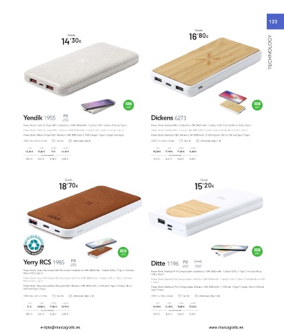 Power Bank. Caña de Trigo/ ABS. Inalámbrico 10W. 8000 mAh. 2 Salidas USB. Salida y Entrada Tipo C. Power Bank. Bambú/ ABS. Inalámbrico 5W. 8000 mAh. 2 Salidas USB. Entrada Micro USB y Tipo C.