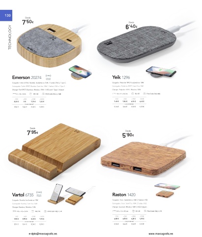 Cargador. Bambú. Inalámbrico 15W. Cargador. Coco. Inalámbrico 10W. 2 Salidas USB.