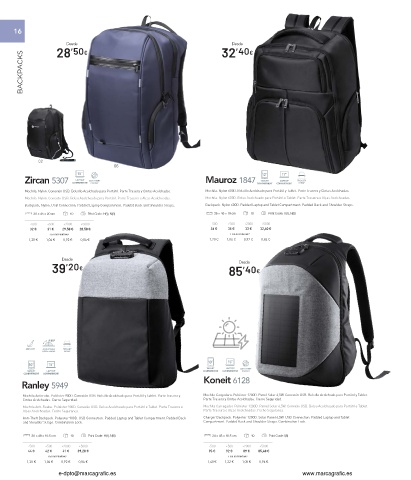 Anti-Theft Backpack. Polyester 900D. USB Connection. Padded Laptop and Tablet Compartment. Padded Back Charger Backpack. Polyester 1200D. Solar Panel 6,5W. USB Connection. Padded Laptop and Tablet
