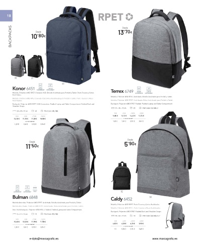 Backpack. Polyester 600D RPET. USB Connection. Padded Laptop and Tablet Compartment. Padded Back and Backpack. Polyester 600D RPET. Padded. Padded Laptop and Tablet Compartment.