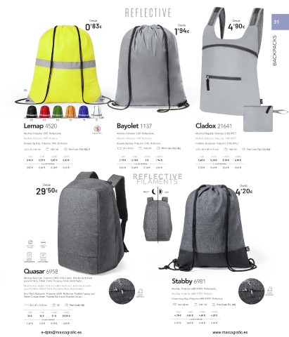 Mochila. Poliéster 190T. Reflectante. SUBLIMATION Mochila. Poliéster 210T. Reflectante. Mochila Plegable. Poliéster 210D RPET.