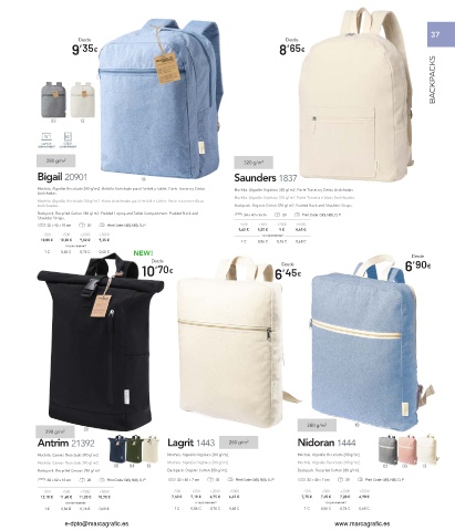Mochila. Canvas Reciclado 390 g/ m2. Mochila. Algodón Orgánico 280 g/ m2. Mochila. Algodón Reciclado 280 g/ m2.