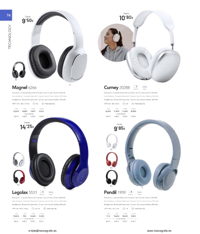Auriculares. Conexión Bluetooth. Conexión Jack 3,5 mm. Batería 400 mAh. Auriculares. Conexión Bluetooth. Conexión Jack 3,5 mm. Batería 200 mAh.