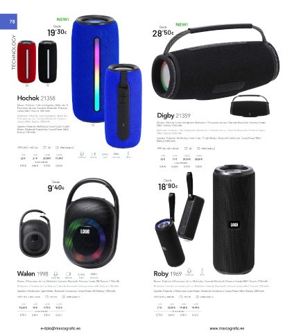 Speaker. 5 Multicolour Light Modes. Bluetooth Connection. Sound Power 5W. Battery 1.200 mAh. Speaker. Polyester. 6 Multicolour Light Modes. Bluetooth Connection. Sound Power 5Wx2. Battery 1200 mAh.