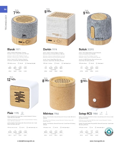 Altavoz. Bambú/ PLA Compostable. Conexión Bluetooth. Potencia Altavoz. Corcho/ Bambú. Conexión Bluetooth. Potencia Sonido 3W. Batería Altavoz. Cuero Reciclado/ ABS Reciclado. Conexión Bluetooth. Potencia Sonido