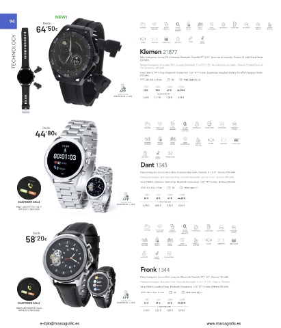 Smart Watch. TPU Strap. Bluetooth Connection. 1,53” TFT Screen. Earphones Included. Battery 23 mAh/ Charging Station